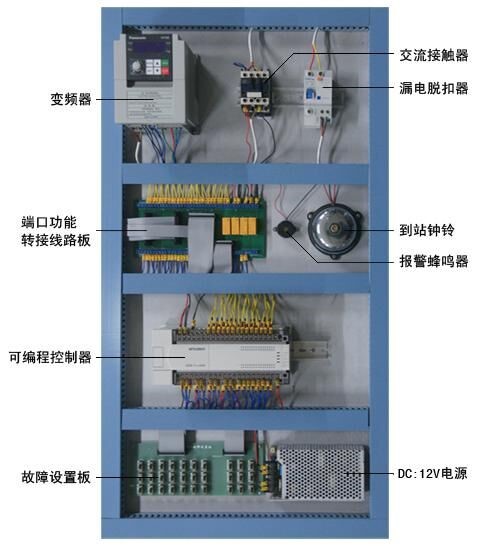 電梯的電氣控制系統(tǒng)采用PLC和交流變頻調(diào)速控制,其硬件結(jié)構(gòu)的組成及功能與實(shí)際電梯完全一樣。具有自動(dòng)平層、自動(dòng)關(guān)門(mén)、順向響應(yīng)轎內(nèi)外呼梯信號(hào)、直駛、電梯安全運(yùn)行保護(hù)以及電梯急停、慢上、慢下、照明、風(fēng)扇等功能,性能可靠、運(yùn)行平穩(wěn)、操作簡(jiǎn)單、能耗低,特別適合于教學(xué)。此外,透明仿真教學(xué)電梯的軟硬件均采用開(kāi)放式結(jié)構(gòu),因此,院校也可以利用此套裝置進(jìn)行二次開(kāi)發(fā)研究。