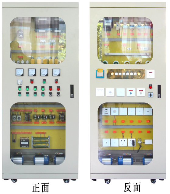 2、電氣柜體正面內(nèi)安裝賓館及公寓內(nèi)部單相電氣控制電路,主要包括賓館客房及公寓住宅全套單相電照明及電器插座模塊(含專用控制面板)同時還配備各種弱電信息模塊。學(xué)生通過各種不同的線路連接,既能進(jìn)行一些諸如請勿打擾電路安裝等小課題的實訓(xùn),也能進(jìn)行一些諸如客房全套電器安裝及故障設(shè)置和排除等綜合性課題的實訓(xùn)。