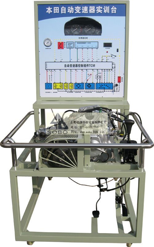 本自動變速器實訓(xùn)臺是本公司采用日本本田公司自動變速器為適應(yīng)汽車教學(xué)需求而研制的,該實訓(xùn)臺由電控變速器(八成新)、操作顯示面板及發(fā)動機(jī)彩色電氣原理圖電腦控制柜、可移動式臺架(萬向腳輪)、驅(qū)動系統(tǒng)(腳踏式油門踏板)變頻電機(jī)驅(qū)動、剎車系統(tǒng)(腳踏液壓盤試剎車)、啟動系統(tǒng)(電門鎖方式啟動)、車速傳感器、電磁閥執(zhí)行器、原車電腦、具有發(fā)動機(jī)運轉(zhuǎn)及顯示(轉(zhuǎn)速.車速.檔位)、液壓油壓力顯示表(顯示換檔過程油壓)、自動變速器電磁閥工作指示LED燈、原車診斷座、進(jìn)行失速實驗等、故障設(shè)置區(qū)可設(shè)置8路故障(老師設(shè)置任一路線路故障)、故障排除區(qū)(學(xué)生通過各種儀器、儀表、)在面板上用專用排故線連接排除故障、傳感器信號模擬等多項功能、具結(jié)構(gòu)緊湊、操作方便、安全可靠、教學(xué)直觀、是汽車自動變速器實物教學(xué)不可缺少的實驗室設(shè)備之一。