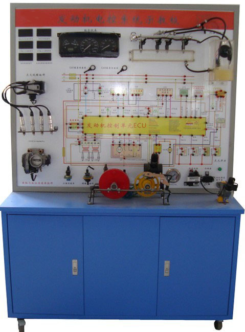 發(fā)動機電控單元、防盜控制單元、防盜鑰匙、發(fā)動機各類傳感器、發(fā)動機各類執(zhí)行器、檢測端子、故障設置系統(tǒng)、大容量蓄電池或12V開關電源、大型彩色噴繪電路原理圖、控制面板、可移動臺架、使用說明書及任務驅動式實訓指導書等。