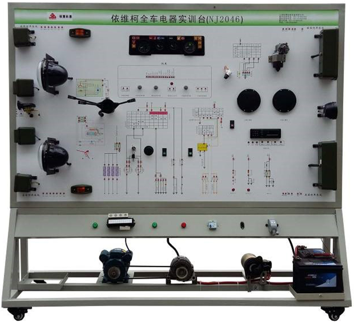 2.設備面板采用耐創(chuàng)擊、耐污染、防火、防潮的高級鋁塑板,表面經(jīng)特殊工藝噴涂底漆處理;面板打印有永不褪色的彩色電路圖;學員可直觀對照電路圖和實物,認識和分析汽車整車電器各系統(tǒng)的工作原理。