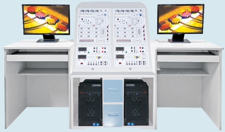 雙工位同步教學(xué)平臺:尺寸:800×600×1200mm 材質(zhì):ABS 厚度5毫米,平臺后部采用透明有機(jī)玻璃;平臺下端兩側(cè)擺放電腦主機(jī),主機(jī)中間另有兩個抽屜存放實(shí)驗(yàn)器材,平臺上部擺放2個工位的數(shù)/模電同步互動教學(xué)系統(tǒng)硬件模塊。 |