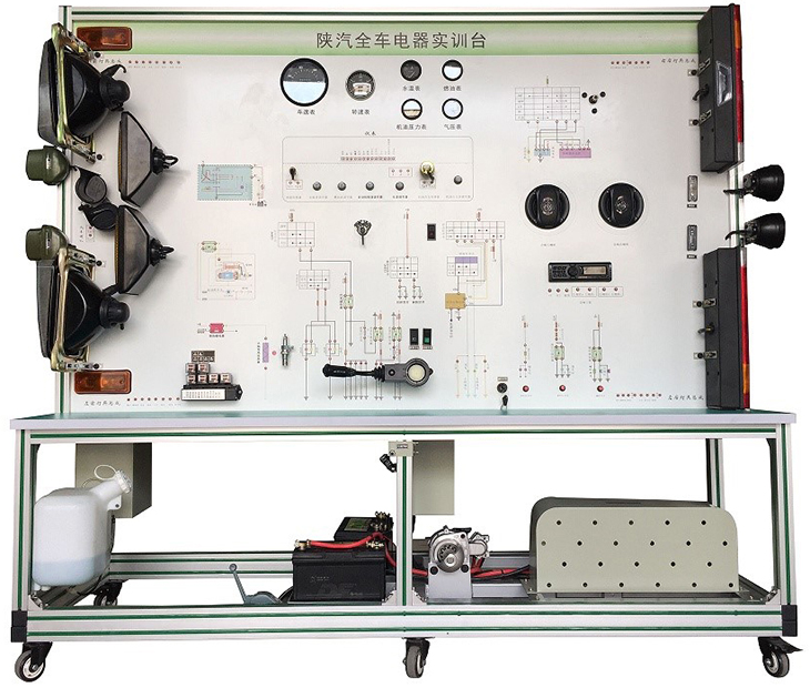 該設備采用泰安TA4360柴油機整車電器實物為基礎,充分展示汽車儀表系統(tǒng)、燈光系統(tǒng)、雨刮系統(tǒng)、喇叭系統(tǒng)、發(fā)動機電器系統(tǒng)、起動系統(tǒng)和充電系統(tǒng)等汽車電器各系統(tǒng)的組成結(jié)構(gòu)和工作過程。