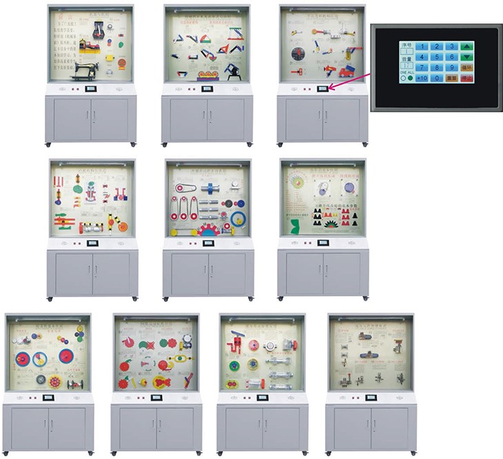 根據(jù)全國(guó)技工學(xué)校機(jī)械類(lèi)通用教材《機(jī)械基礎(chǔ)》示教陳列柜是一套電化教學(xué)設(shè)備。本陳列柜共分十個(gè)柜,陳列柜通過(guò)機(jī)械模型或?qū)嵨铮浜舷鄳?yīng)的圖文資料,形象地展示與解說(shuō)機(jī)械基礎(chǔ)的基本知識(shí),加強(qiáng)學(xué)生對(duì)通用機(jī)械基礎(chǔ)的類(lèi)型、結(jié)構(gòu)特點(diǎn)及其設(shè)計(jì)的感性認(rèn)知,為進(jìn)一步學(xué)習(xí)機(jī)械基礎(chǔ)奠定基礎(chǔ)。