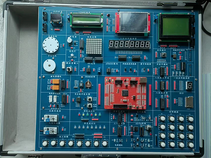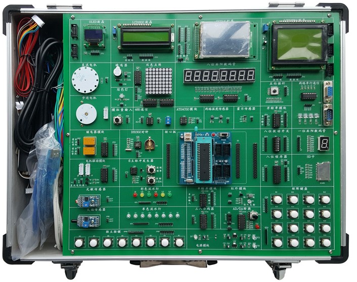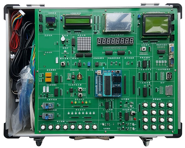 單片機實訓(xùn)實驗臺,單片機技術(shù)實驗箱,單片機與嵌入式實驗室,萬能單片機實驗開發(fā)系統(tǒng)、單片機開發(fā)應(yīng)用技術(shù)綜合實驗裝置是電子與通信、自動化信息工程技術(shù)、計算機基礎(chǔ)課實訓(xùn)室等課程實驗實訓(xùn)。單片機實驗室是專為電子、通信和自動化等專業(yè)而設(shè)立,單片機實驗室設(shè)備適應(yīng)《微機原理與接口技術(shù)》《單片機原理與應(yīng)用》課程的需要,滿足了正常實驗教學(xué)的同時,設(shè)立了開放性實驗室功能,充分調(diào)動了學(xué)生學(xué)習(xí)的積極性,方便了學(xué)生和老師實驗程序的編制和調(diào)試。單片機實訓(xùn)設(shè)備主要承擔(dān)《單片機原理》、《微機接口與技術(shù)》等相關(guān)課程的實驗、課程設(shè)計及畢業(yè)設(shè)計。